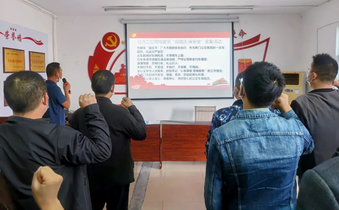 為進一步強化公交駕駛員“迎國慶、防風(fēng)險、遏事故、保安全”及優(yōu)質(zhì)服務(wù)的意識,9月25日上午,以節(jié)前駕駛員安全服務(wù)培訓(xùn)活動為契機,市公交集團組織百余名駕駛員代表,在公汽二公司會議室開展“安全行車、文明服務(wù)、迎接國慶”宣誓活動。