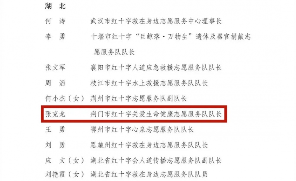 《全國(guó)紅十字志愿服務(wù)先進(jìn)典型名單》