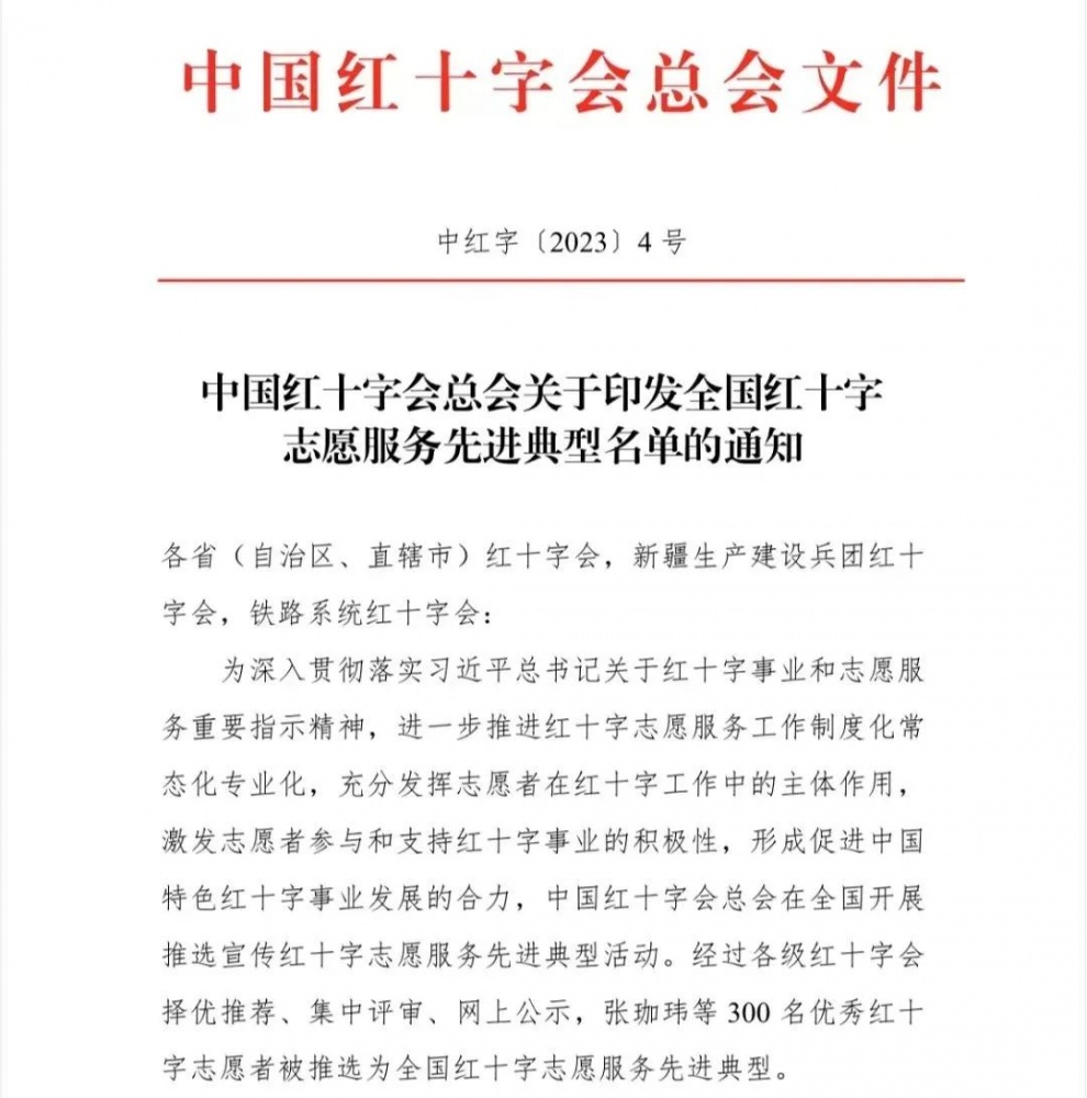 “全國(guó)紅十字志愿服務(wù)先進(jìn)典型”