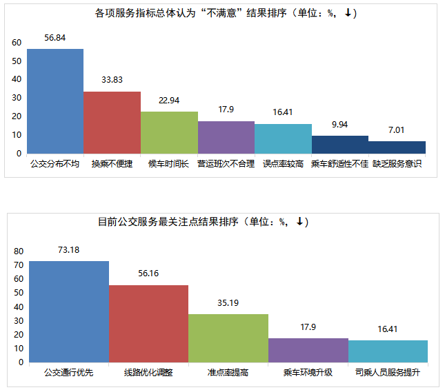 本次調(diào)查共收集有效問(wèn)卷1471份,623條相關(guān)問(wèn)題及建議。問(wèn)卷涵蓋公交線網(wǎng)優(yōu)化、文明服務(wù)、換乘便捷度、候車時(shí)間、乘車舒適度、智能信息建設(shè)等多方面內(nèi)容。調(diào)查顯示,參與投票人群年齡結(jié)構(gòu)主要集中在18~59歲,其中以40~59歲為主體。(一)公交服務(wù)滿意度指標(biāo)及數(shù)值根據(jù)交通運(yùn)輸部GB/T 36953.2-2018城市公共交通乘客滿意度評(píng)價(jià)方法,公共交通乘客滿意度指乘客對(duì)公共交通服務(wù)質(zhì)量的滿意程度,評(píng)價(jià)程度設(shè)置為“很滿意”、“滿意”、“一般”與“不滿意”。問(wèn)卷顯示荊門公交服務(wù)整體滿意度為91.96%。問(wèn)卷顯示公交線網(wǎng)分布不均、線路不合理、換乘不便捷為主要服務(wù)訴求,公交線路分布不均為“不滿意度”投票最高問(wèn)題;主干道公交優(yōu)先通行權(quán)為服務(wù)訴求投票最高關(guān)注點(diǎn)。 此次問(wèn)卷調(diào)查,感謝廣大市民乘客的積極參與,市公交集團(tuán)將結(jié)合實(shí)際,認(rèn)真聽(tīng)取、采納乘客提出的意見(jiàn)及建議,予以改進(jìn): 關(guān)于線路運(yùn)營(yíng)方面,對(duì)5路線(圣境山—海慧)、88路線(東寶碧桂園—楊家橋)、58路線(碧桂園北—漳河新區(qū)政務(wù)中心)、59路線(荊楚理工學(xué)院—掇刀區(qū)政務(wù)中心)早中晚客流高峰期加密營(yíng)運(yùn)班次和增設(shè)區(qū)間班次,對(duì)33路線(楚天學(xué)?!d化三路東)、69路線(雙喜小學(xué)—園博園東門)、13路線(牌樓—園博園西門)進(jìn)行線路優(yōu)化,方便沿線居民出行需求;近期擬開(kāi)通碧桂園翡翠公館至長(zhǎng)崗萬(wàn)人社區(qū)、東寶政務(wù)中心至市政務(wù)中心公交線路,具體方案正逐步規(guī)劃中。