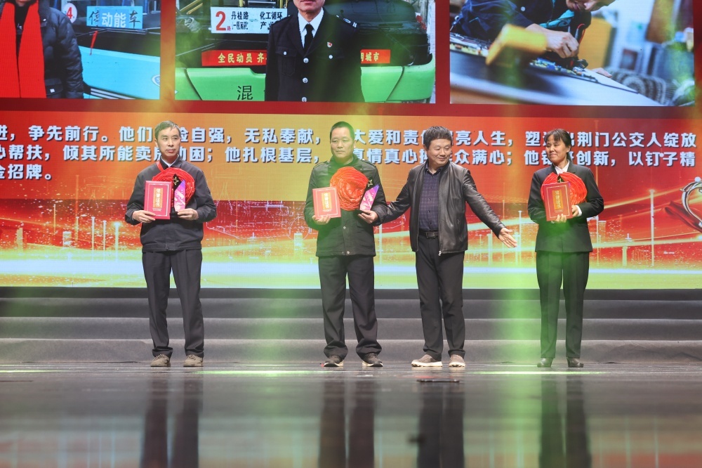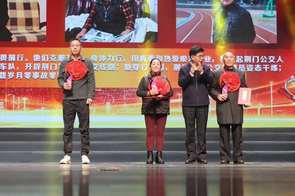 頒獎環(huán)節(jié),在荊門公交發(fā)展歷程中做出過杰出貢獻的8名“時代標兵”人物,被授予“崢嶸歲月”“風華正茂”“無悔青春”時代標兵,感謝他們一路走來的無私付出和拼搏奮斗。