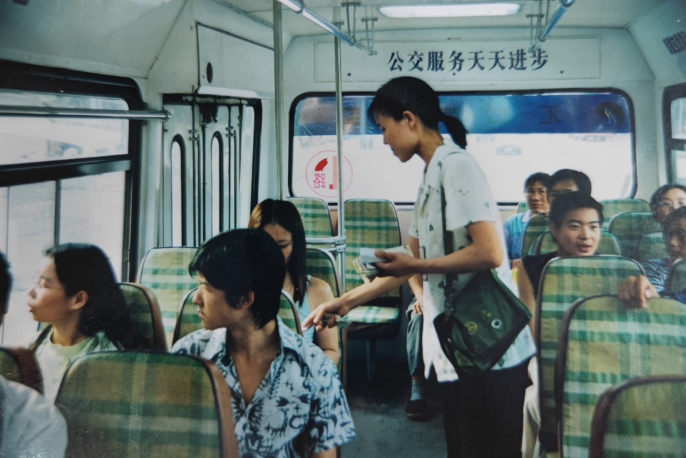 ▲90年代,公交售票員工作模樣??嬷卑?,手中拿著零錢(qián)和車(chē)票,收錢(qián)、找錢(qián)、給票、查票行云流水。高峰期數(shù)十人上下車(chē),想要收好票款,無(wú)疑是一種考驗(yàn),而她們久經(jīng)考驗(yàn)。