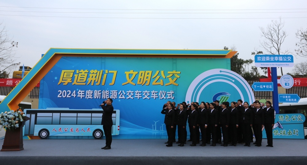 當(dāng)日,我市舉行新能源公交車交付儀式,252臺新能源公交車正式交付,荊門中心城區(qū)新能源車輛占比一舉達(dá)到95.4%,更新速度、質(zhì)效、數(shù)量位列全省第一方陣,市民乘坐公交出行將更加方便,環(huán)保,也更加時尚。荊門公交集團負(fù)責(zé)人在接過新車鑰匙時鄭重承諾,將全力運營好車輛,精心愛護好車輛,用心服務(wù)好市民。